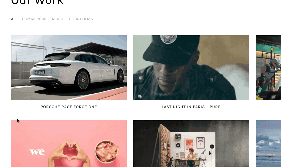 In Reel 2.0 we’ve also integrated another great feature for video professionals. You can assign a short video to each of your portfolio posts to play when hovering that specific post in the Portfolio gallery. See it live on the demo page.