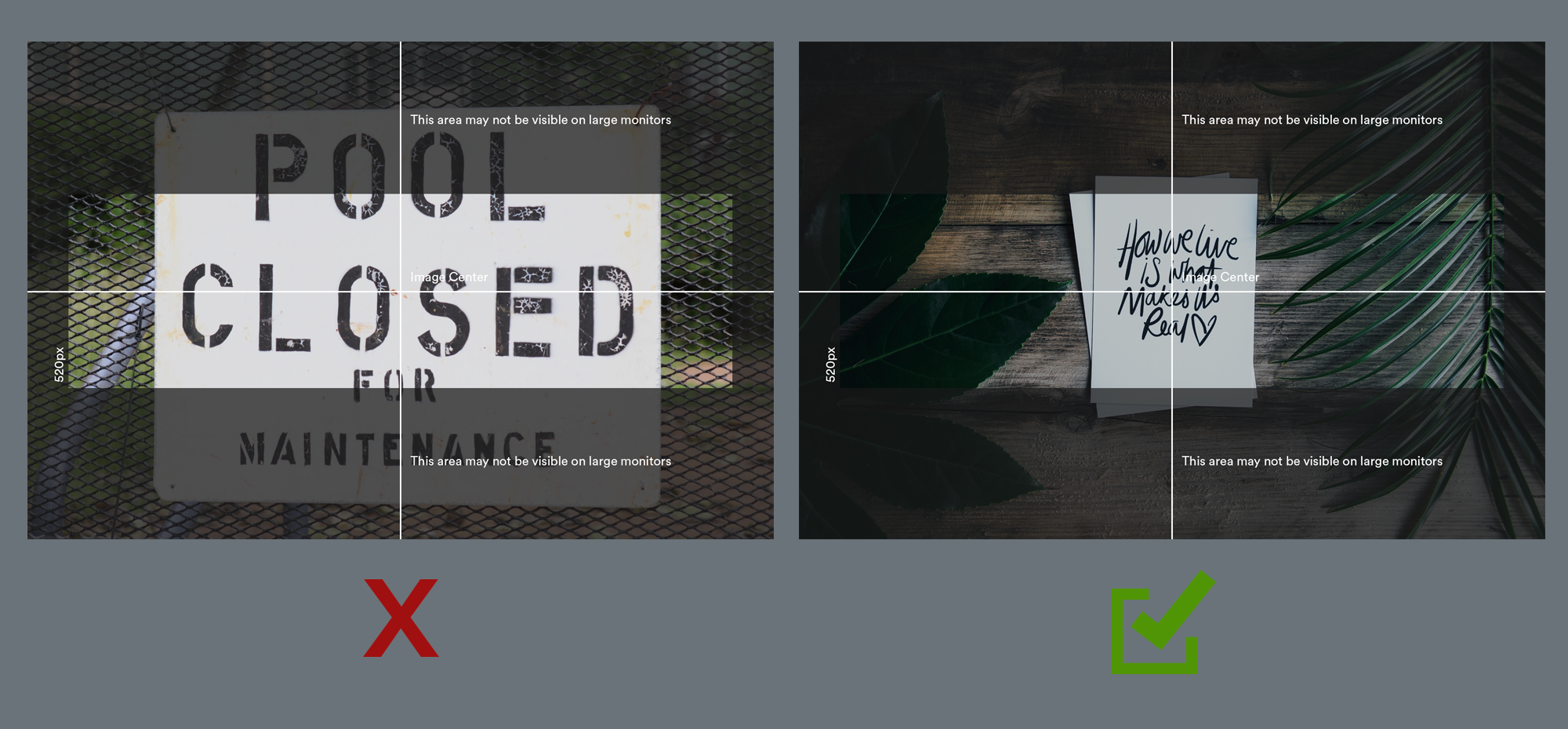 ✖ Don’t use images with large typography at all, or make sure that the text is small and located at the center: