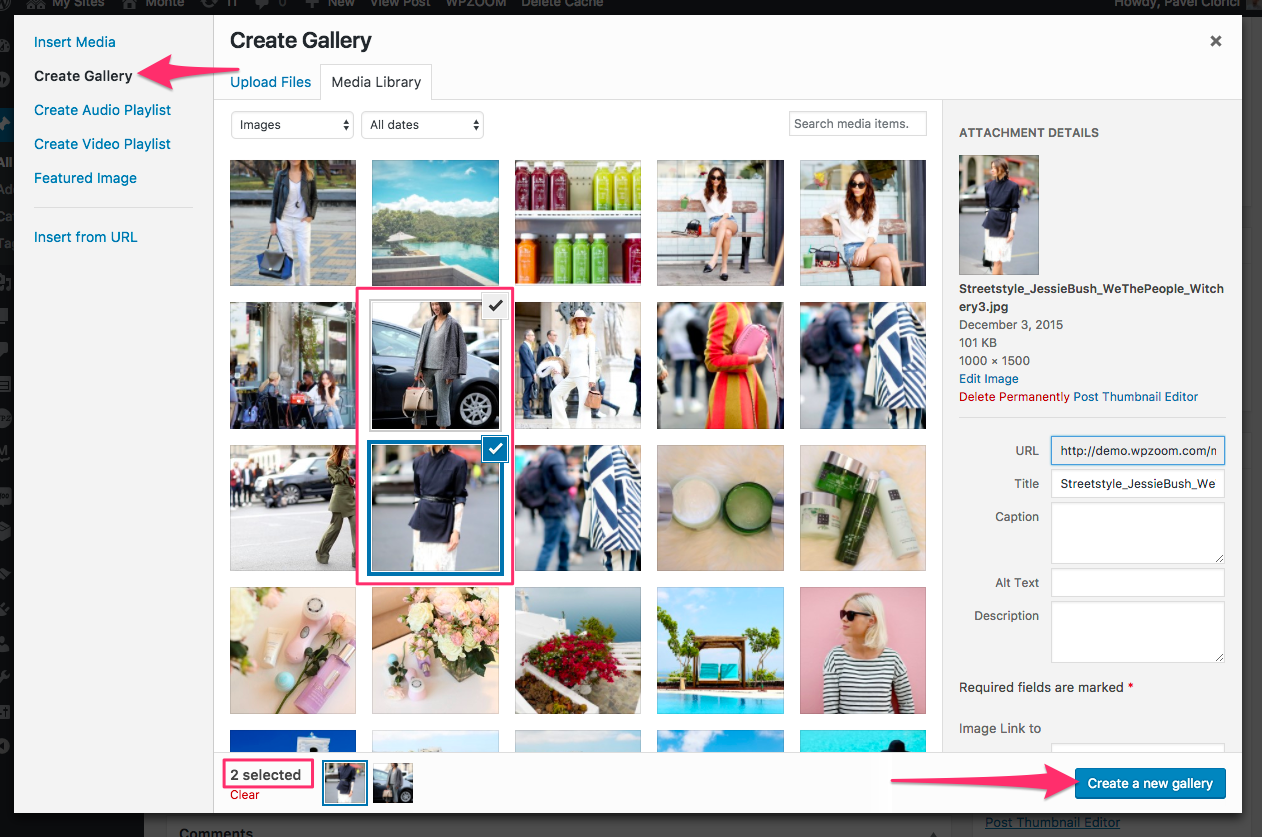 Select 2 or 3 images and click the “Create a new gallery” button.