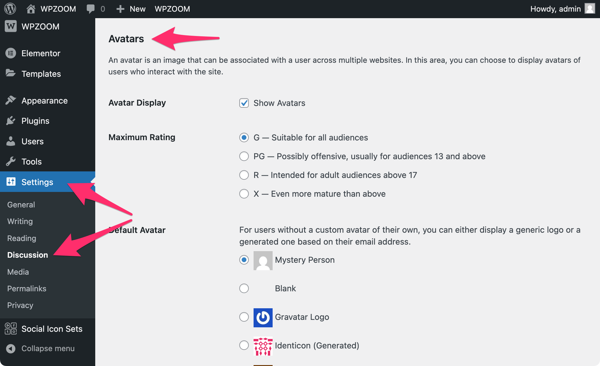 For more options, you can also go to the Avatars section of Settings > Discussion in the WordPress admin menu.