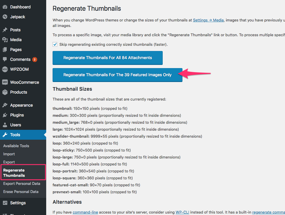 TIP: If you have many images uploaded in your Media Library, we recommend you to choose the 2nd option to regenerate thumbnails only for the Featured Images