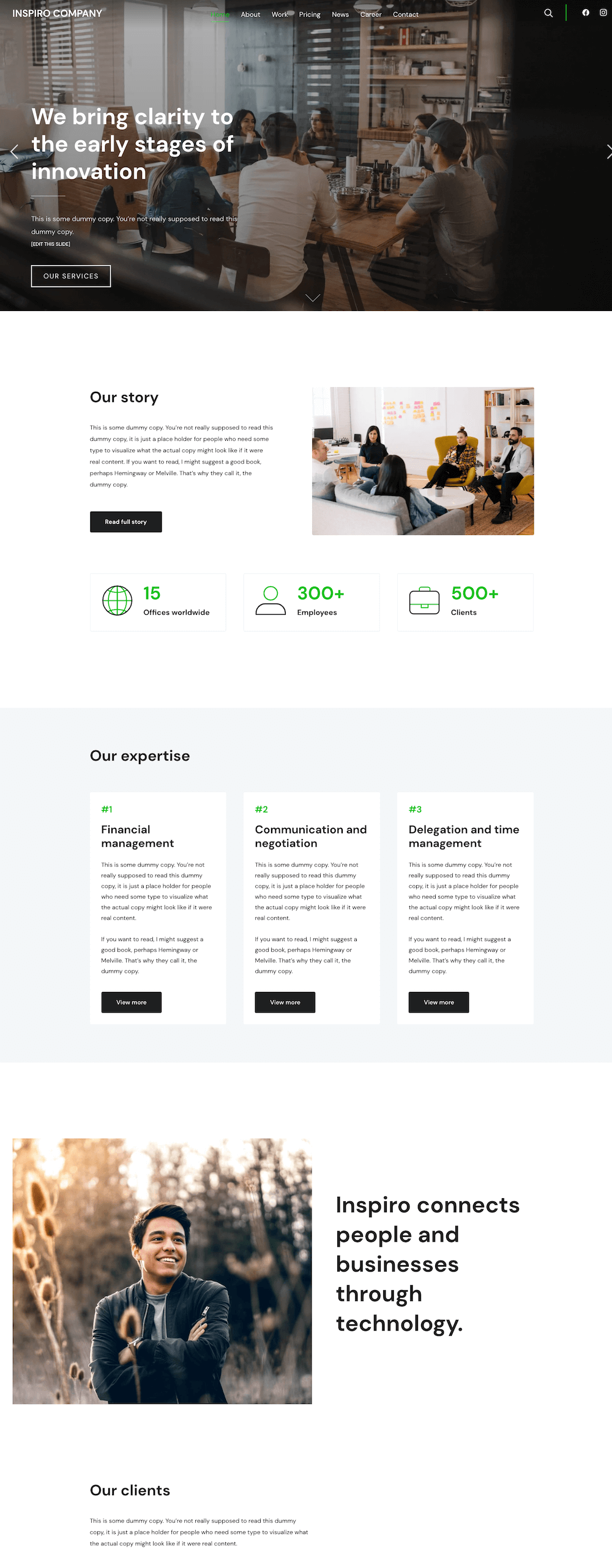 The Business starter site for Inspiro Premium is a polished and flexible WordPress theme ideal for small businesses, service providers, and corporate websites. Perfect for showcasing your services, building trust with potential clients, and establishing a strong online presence, this layout is built to help businesses grow.