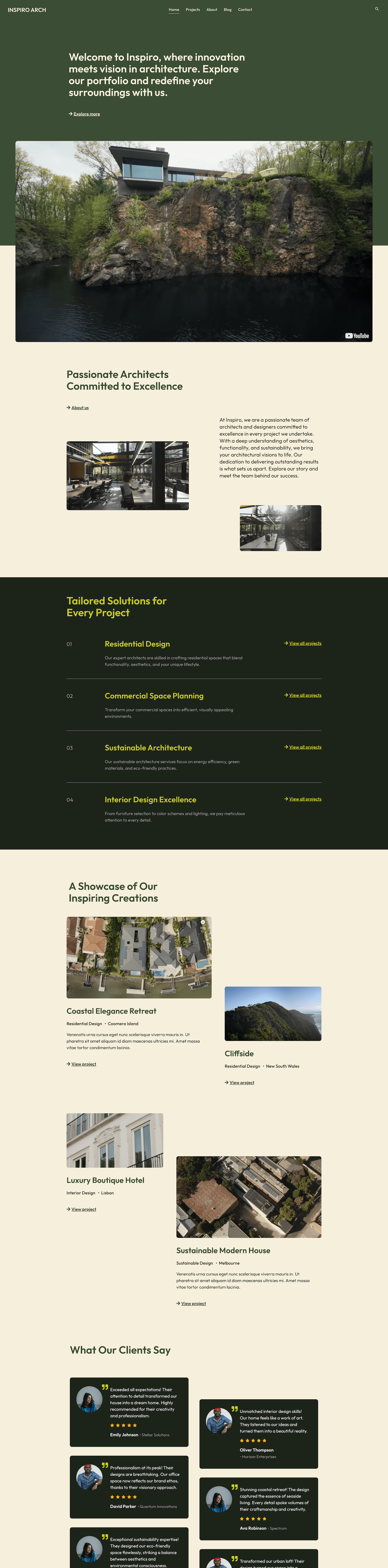 The Architecture starter site for Inspiro Premium is a sleek and modern architecture WordPress theme designed for architects, firms, and design studios looking to showcase their work professionally. Whether you need an architecture website template for a portfolio, client projects, or an agency site, this theme provides a clean, structured design tailored to the architecture industry.
