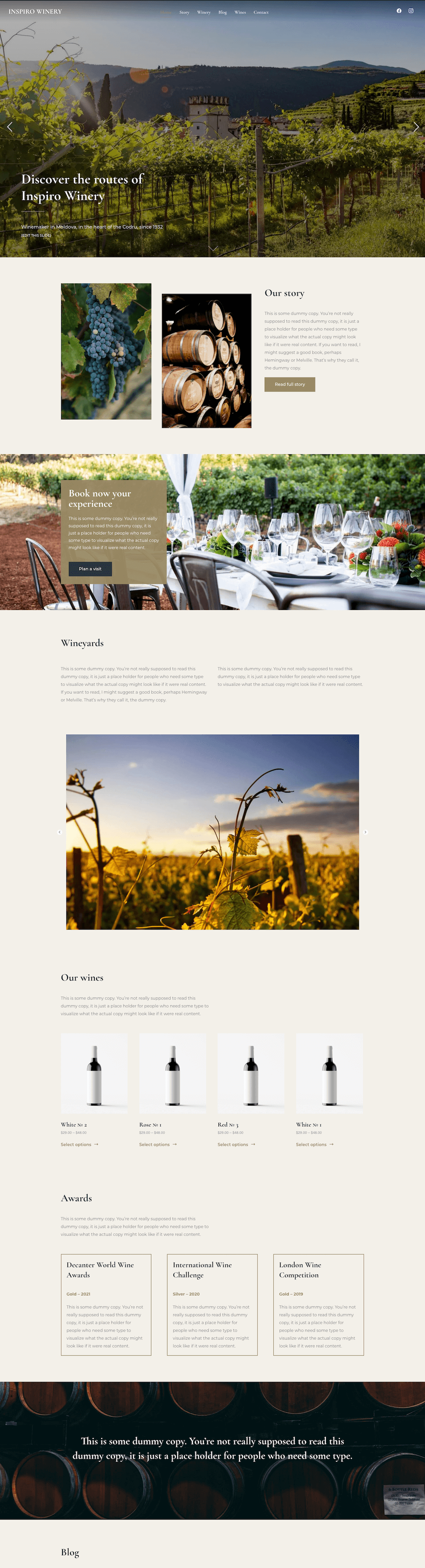 Winery WordPress theme, About page, Winery page, Blog page, Contact page
