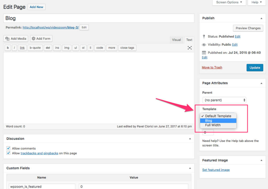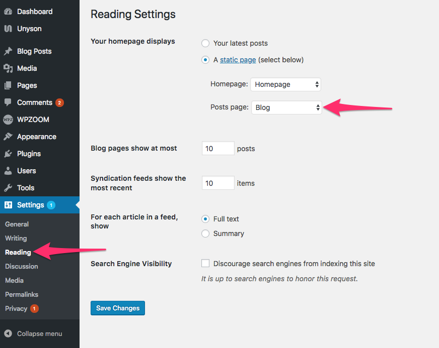 In some of our older themes, like Videozoom or other magazine and business themes, this method doesn’t work. You will have to create a new Blog page and assign the “Blog” page template in order to show the posts on this page.
