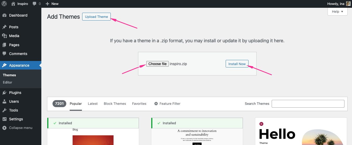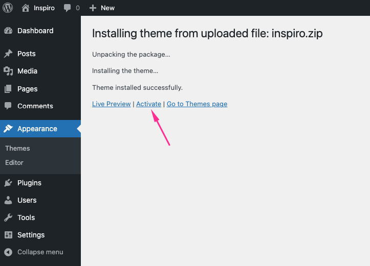 Installing Inspiro Premium is quick and straightforward. Follow these steps to set up the theme on your WordPress website: