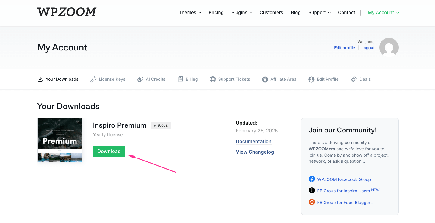 3. Find Inspiro Premium and click Download to get the .zip file.