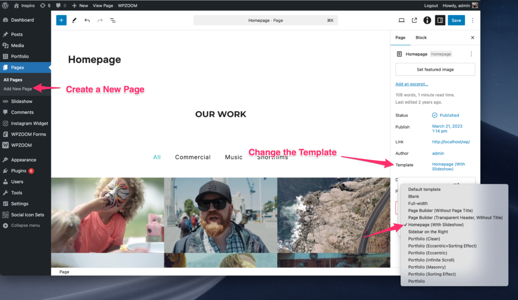 You’ll need to create a new page and assign it the Homepage (with Slideshow) page template.
