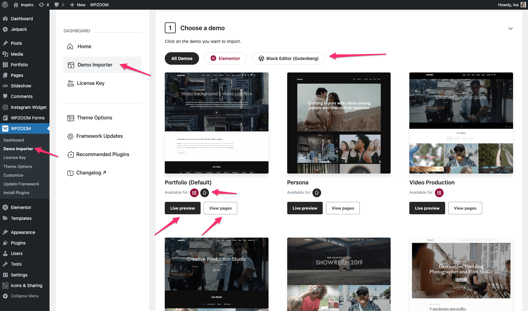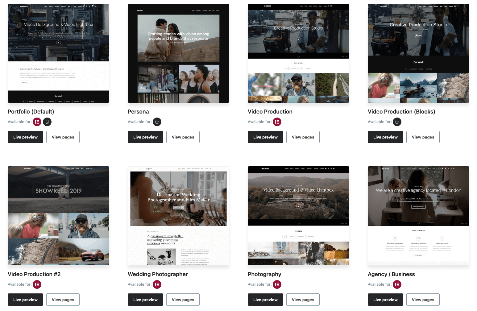 You can preview the Starter Sites in the gallery on our website, as well as within the Demo Importer section of the Inspiro Premium theme after you install it on your website: