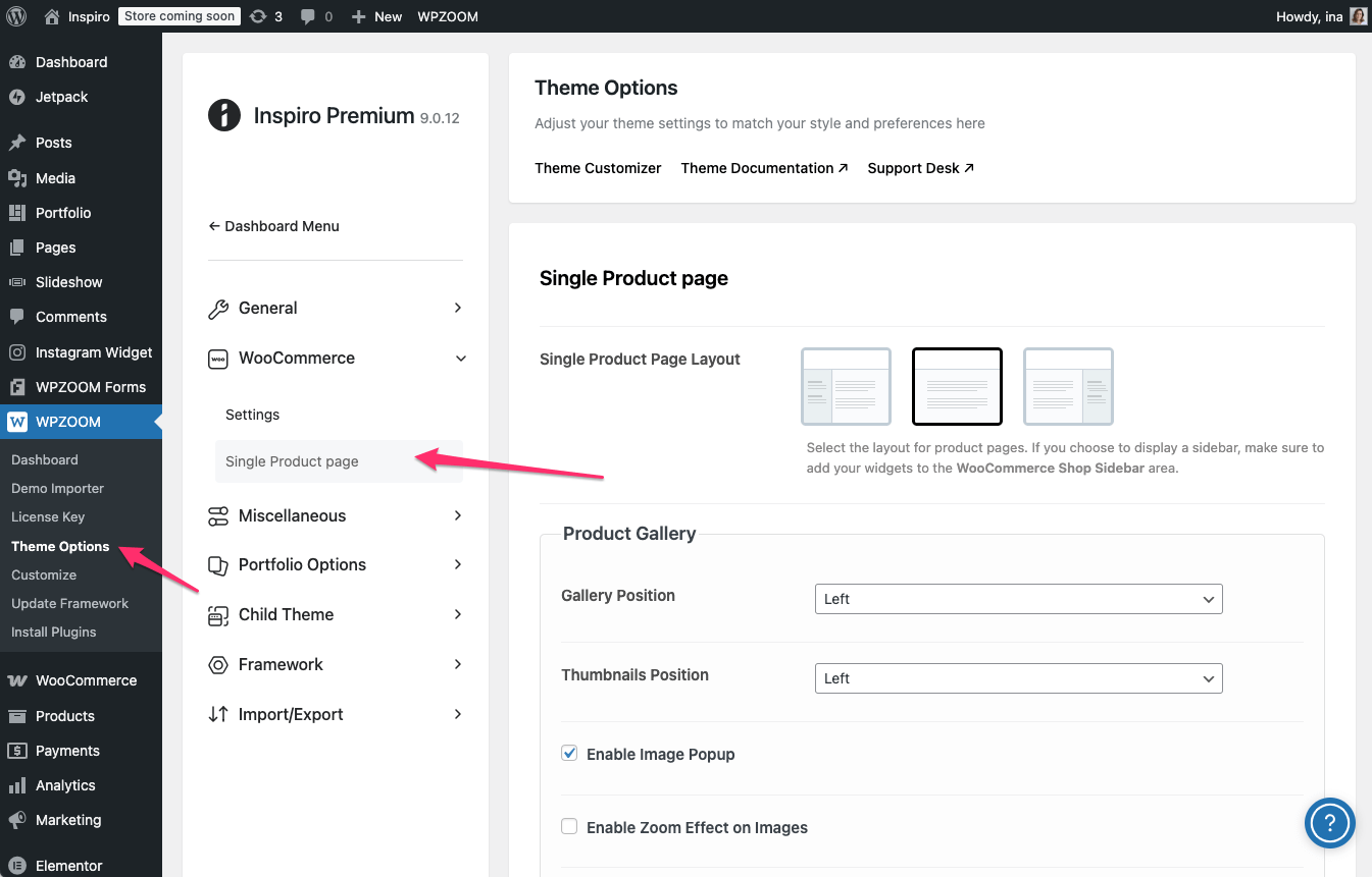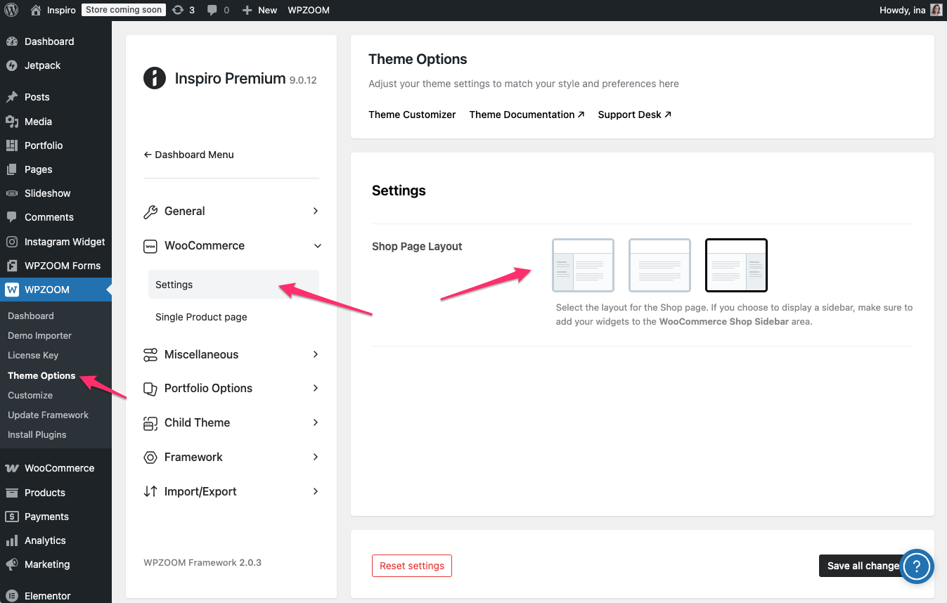 In WPZOOM → Theme Options → WooCommerce you’ll find two sub-sections: