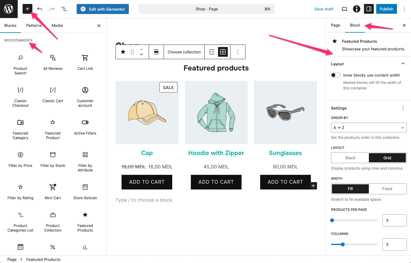 Use the WooCommerce blocks to build or modify your shop pages.