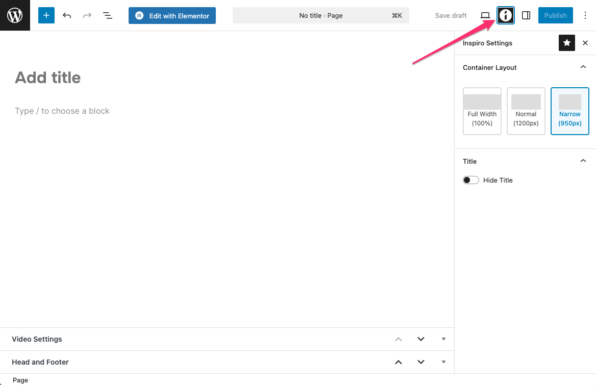 When editing a page, click the black circular icon with a stylized “i” in the upper-right corner. This opens a panel where you can: