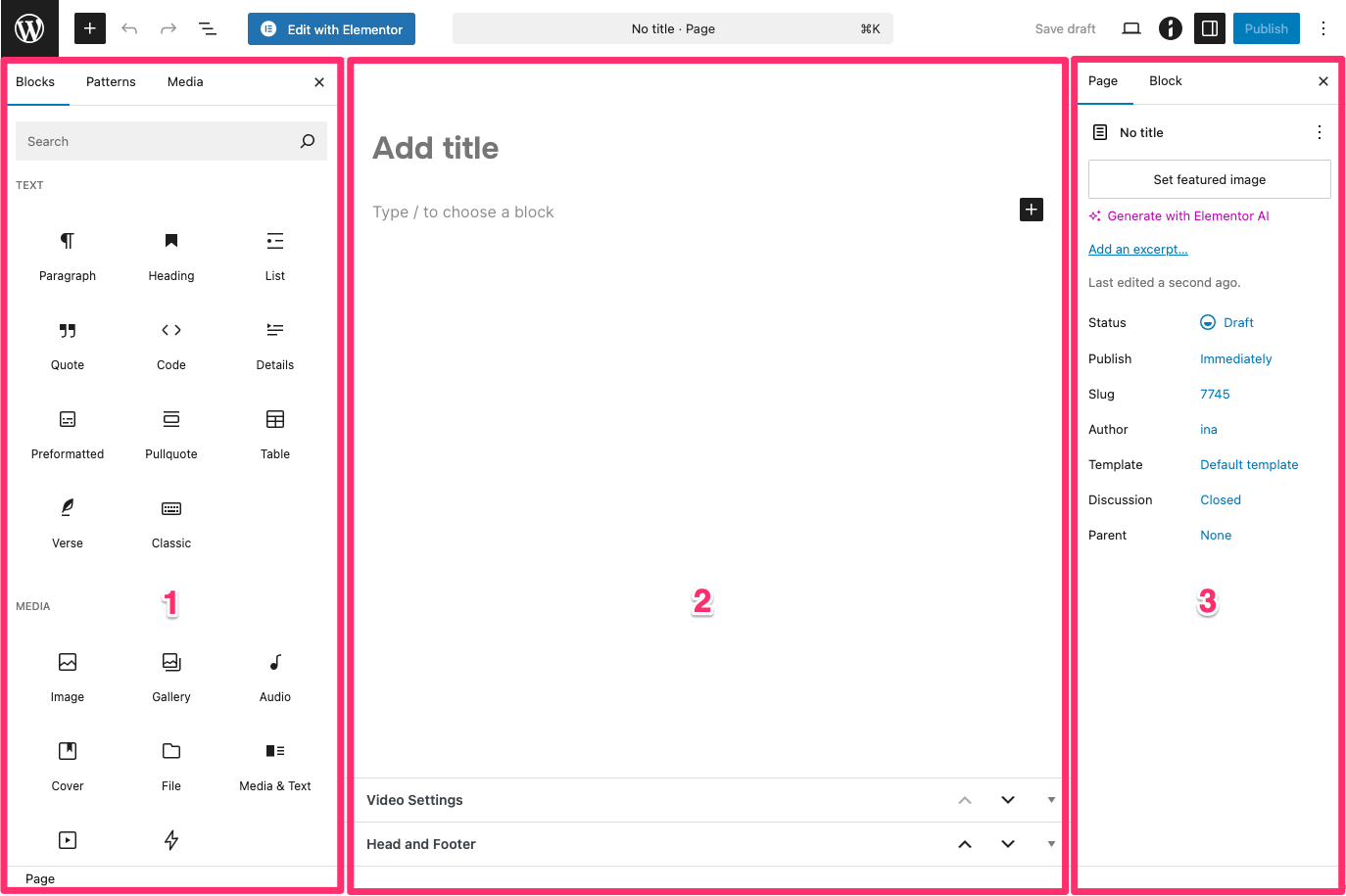 You can combine multiple blocks to create sections and layouts, and the editor stores the entire page content in the WordPress database in a structured format.