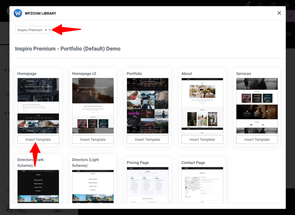 2. Select “Inspiro Premium” From the “Theme” drop-down menu.