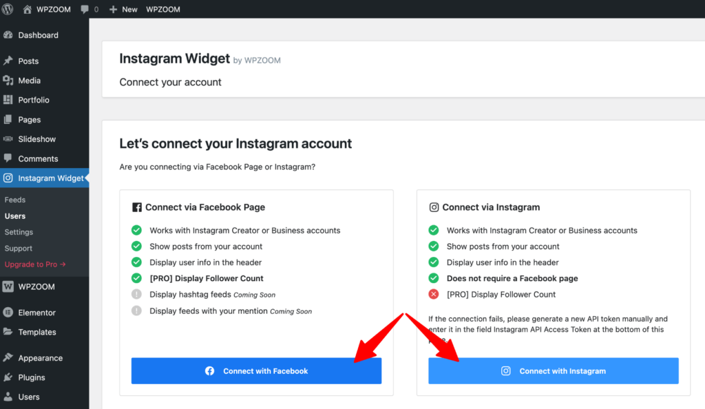 4. Click “Connect with Facebook” or “Connect with Instagram” to connect your Instagram account. You can follow our detailed tutorial for step-by-step instructions.