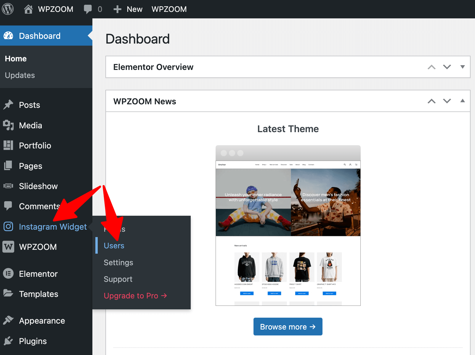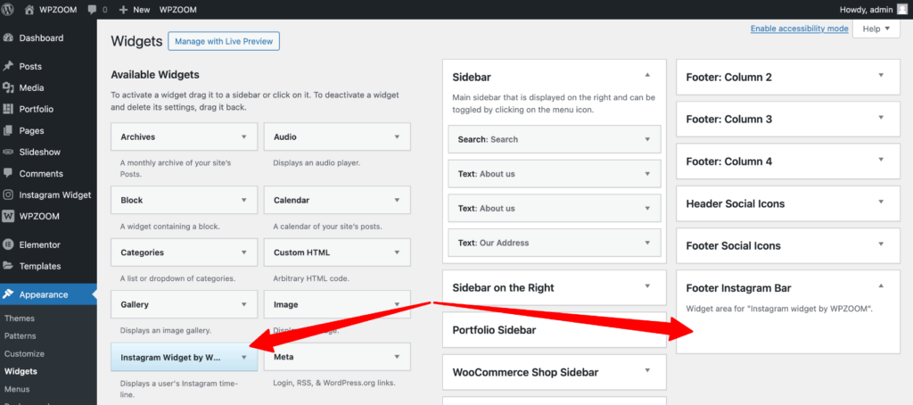 6. Add the Instagram Widget by WPZOOM widget to the Footer Instagram Bar area: