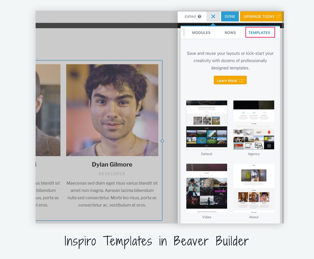 If you use a premium version of Beaver Builder, then you will need to select the Inspiro group to see these templates: