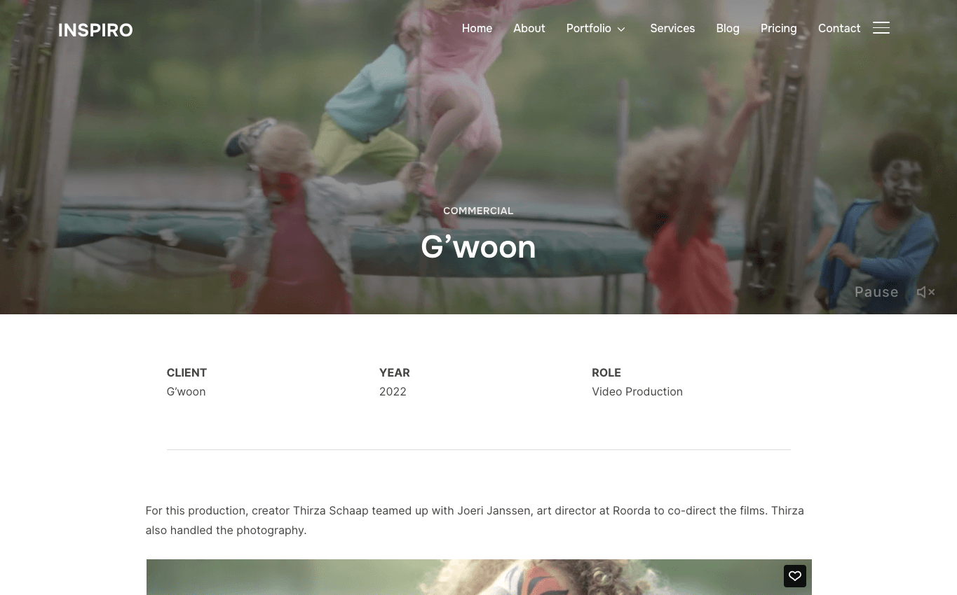 Just like single pages and blog posts, portfolio posts support video backgrounds in their headers.