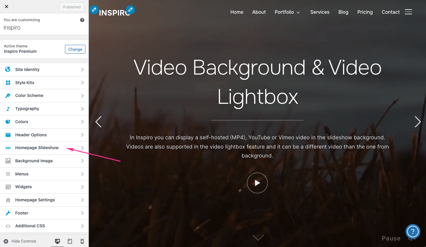 Once you’ve created a few slideshow posts, it’s time to display them on your homepage. Inspiro gives you two flexible ways to do this—either by using a page template that displays the slideshow automatically at the top or by adding the slideshow via the Elementor widget.