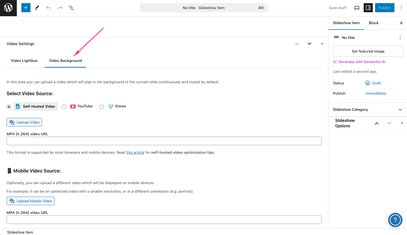 1. Go to Slideshow → Add New Slideshow Item (or edit an existing one).