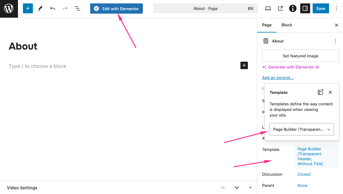 3. Click Save Draft or Publish, then click Edit with Elementor.