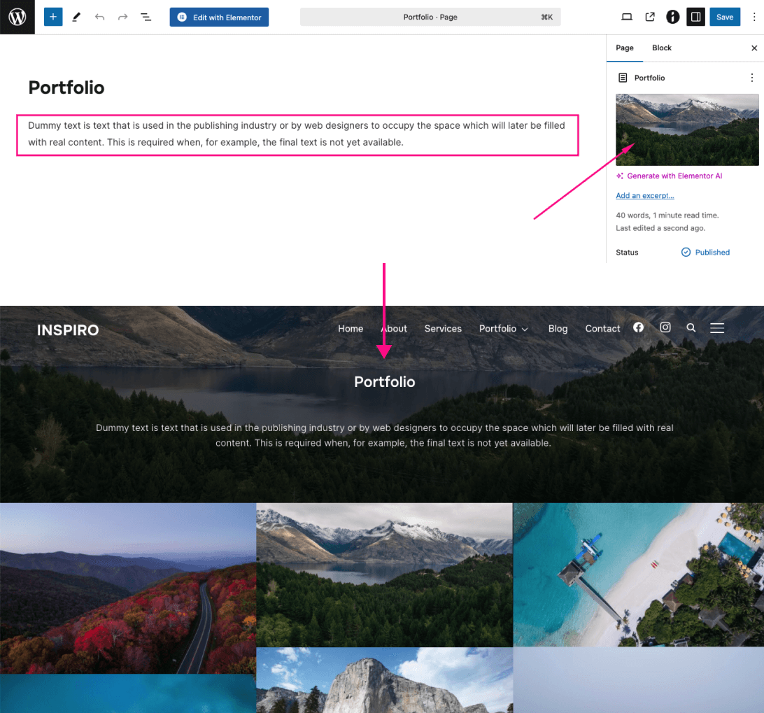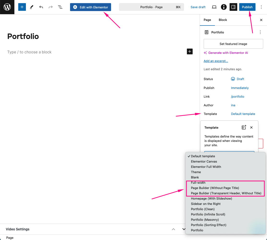 π‘ Before creating a portfolio page or section, it’s recommended to populate the Portfolio section with portfolio items. See more: How to add portfolio posts