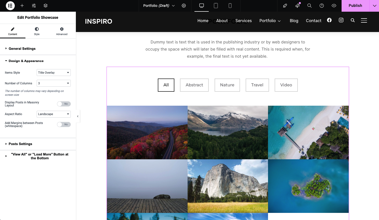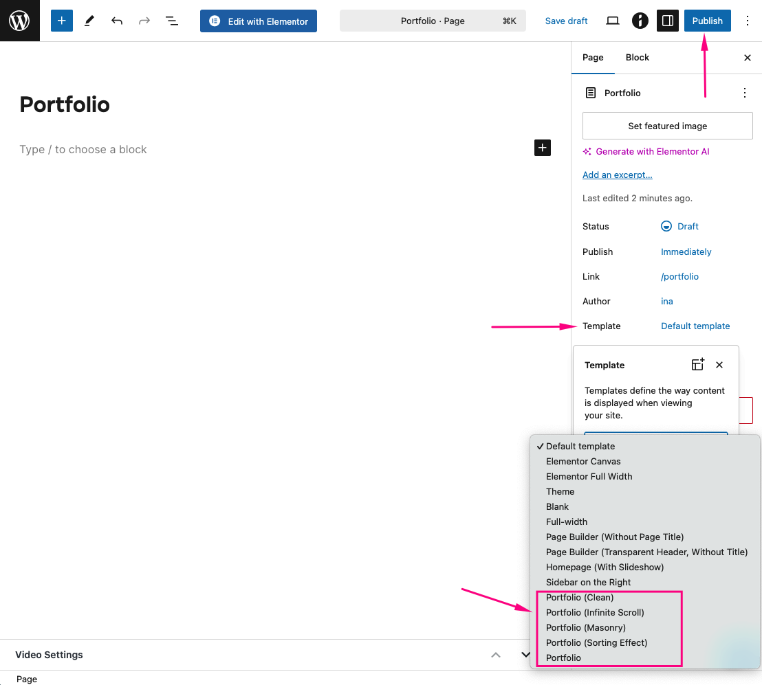 4. Customize the Portfolio block in the right sidebar and Publish.