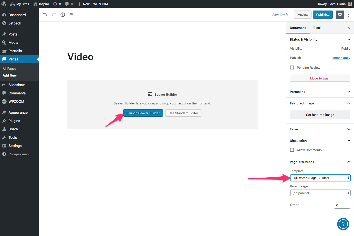 Instructions are similar to previous ones, but in this case, make sure to set the Full-width (Page Builder) template to the new page that you’re creating a portfolio for.