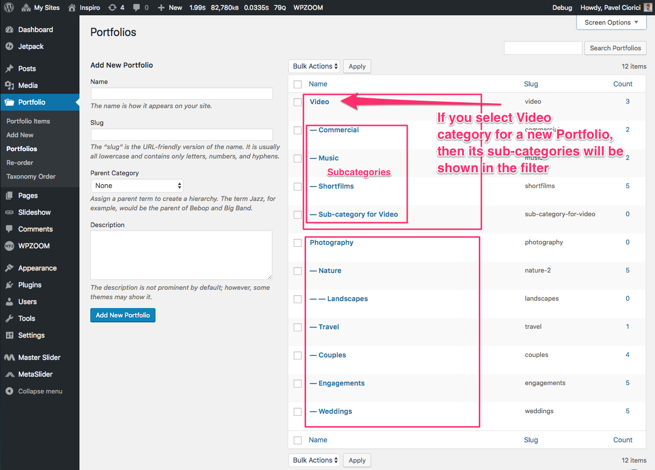 You can repeat the same steps for every new Portfolio page which you want to create. For best results, make sure to use sub-categories and organize Portfolio posts within them.