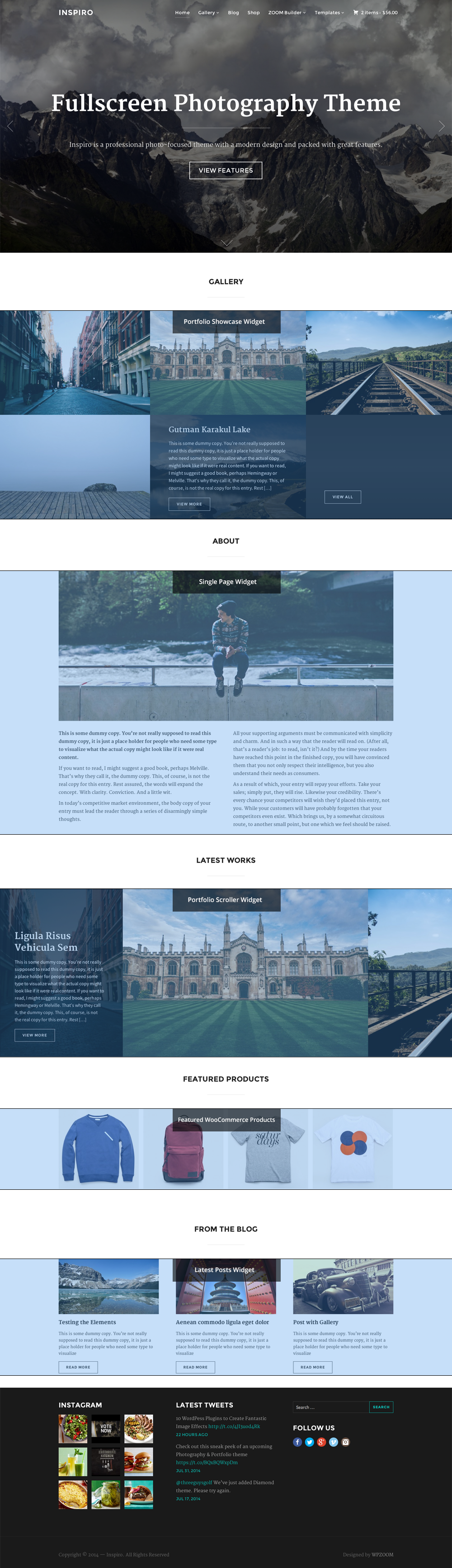 We’ve even included in the theme several custom widgets: WPZOOM: Portfolio Showcase, WPZOOM: Portfolio Scroller, WPZOOM: Single Page, WPZOOM: Featured WooCommerce Products:
