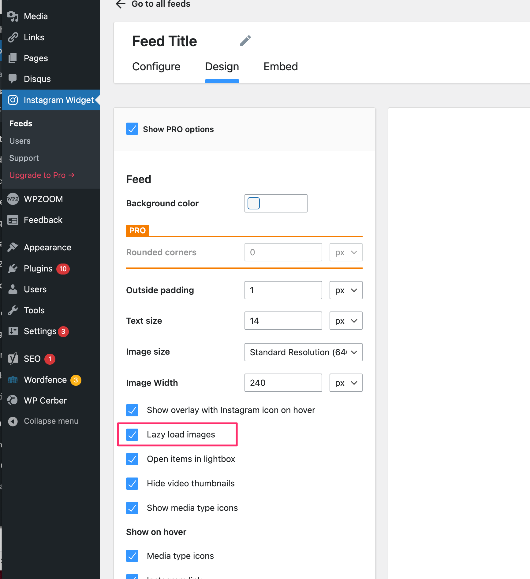 Our plugin already includes a Lazy Loading for images option which can be enabled when editing a feed: