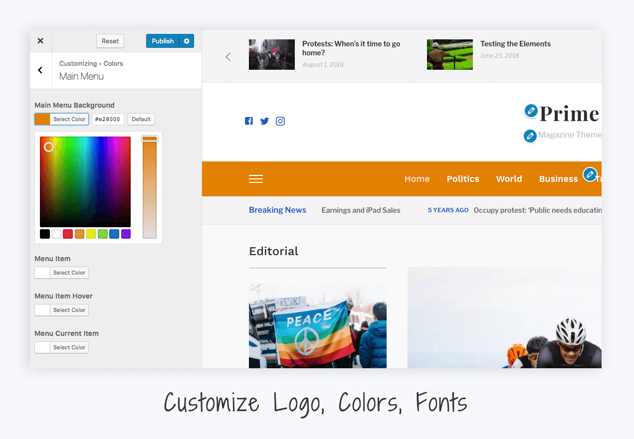 Prime News WordPress theme is ideal for magazine and news websites. It features multiple unique sections that allow you to showcase content from diverse sources. Customize the layout of the homepage and all theme details quickly and easily using the Live Customizer.