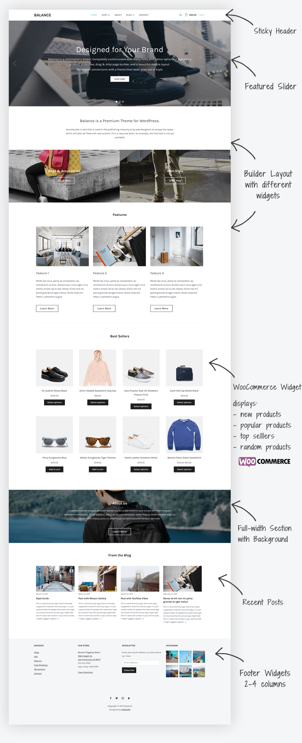 Balance is a minimalist WooCommerce theme that is both flexible and feature-rich, designed to captivate shoppers. Its unique product grid and strategic use of white space highlight your products effectively. Suitable for any inventory size, Balance offers powerful customization options to fit both emerging and established brands perfectly.